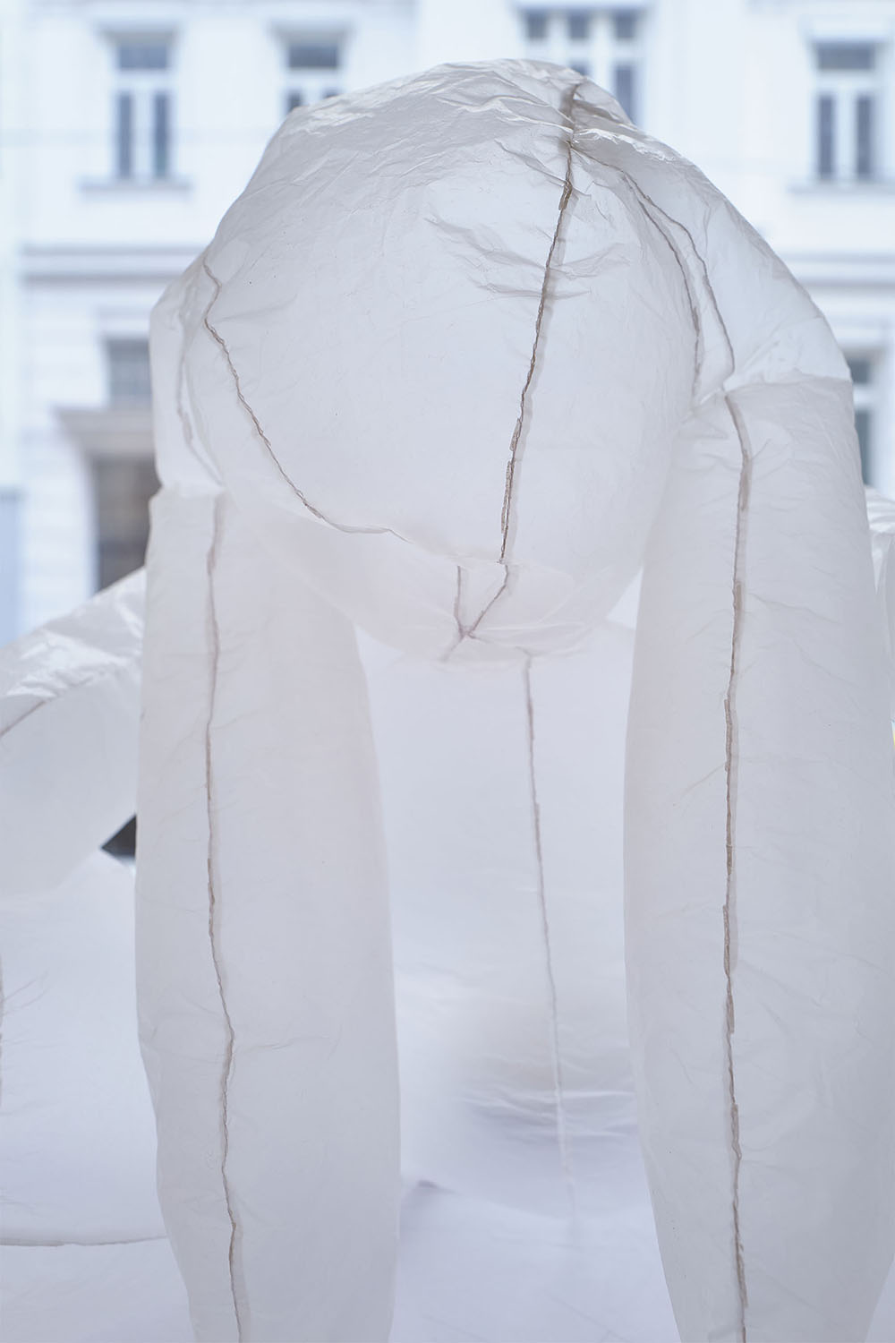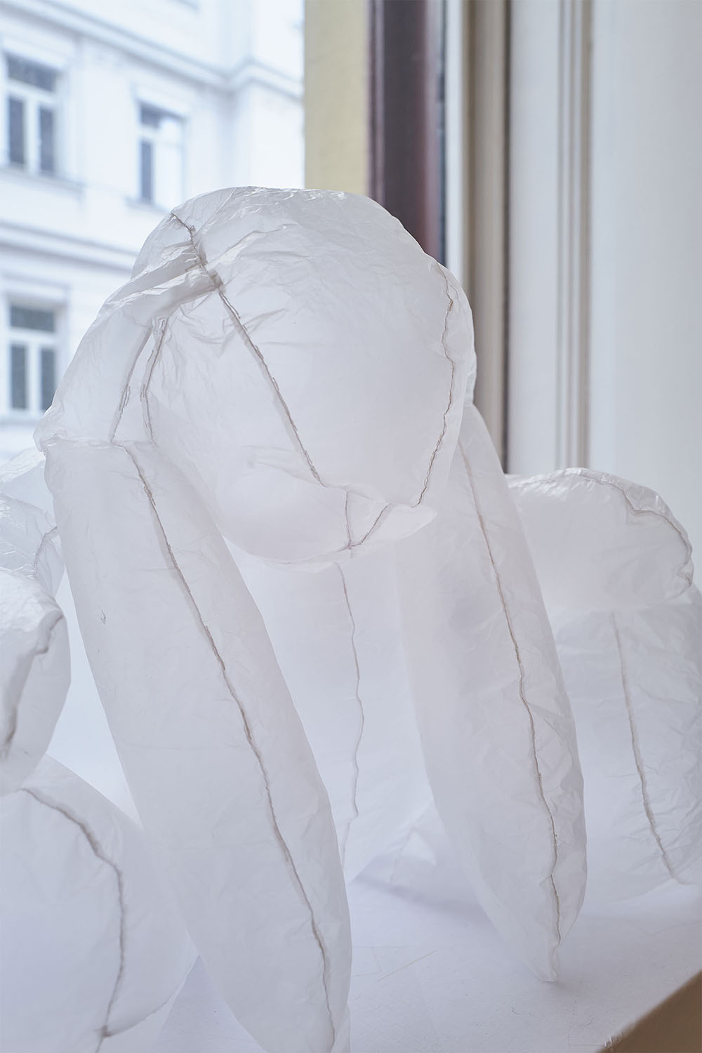 With this new body of work, I aim to make the emotional facets of loneliness tangible and to encourage viewers to reflect on their own experiences of isolation. The “fabric bunny,” delicate and fragile like a childhood memory, embodies this vulnerability for me. It stands symbolically for loneliness—a fragile island, like the ones described in Atlas of Remote Islands by Judith Schalansky, lying in the midst of the Arctic Ocean. No one lives there—only silence and emptiness.